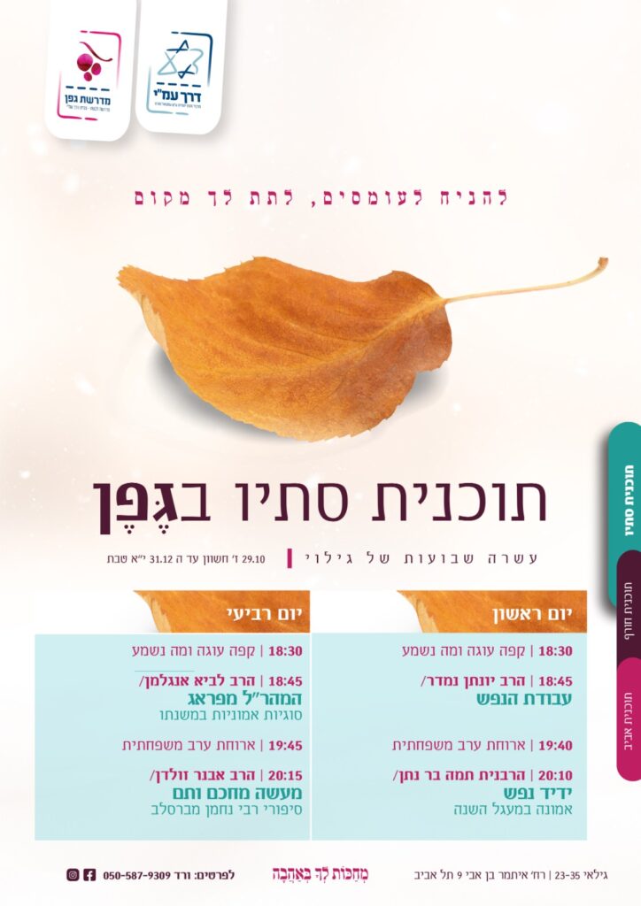 ז’ חשוון (29.10) – י”א טבת (31.12) איתמר בן אבי 9 תל אביב | גילאים 20-35